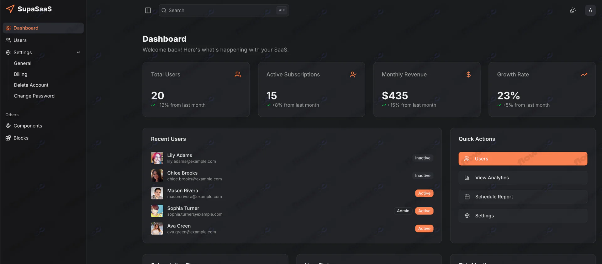 Whether you're launching your own SaaS or building one for a client, SupaSaaS provides everything you need out of the box.